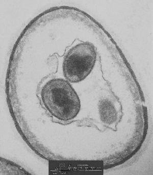 seemed to be living cells. The cell diameters averaged 10 microns, a