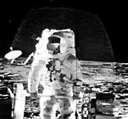 Apolo 14 , enfocan la cámara de televisión hacia