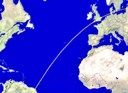 globe of the Michael/Dragon Line (from UK thru Azores -calculated