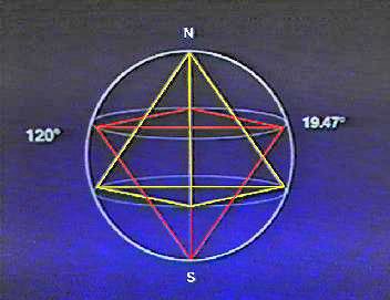 Figure 2 – The interlaced tetrahedron inside of a sphere, showing coordinate